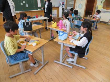 家の方が心を込めて作ってくださったお弁当を、嬉しそうに食べる子供たち。