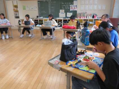 10月15日(火)お弁当タイム(4・5・6年生) 公開日 2024/10/15 更新日 2024/10/15 碧っ子の姿から 上学年になっても、お弁当タイムは嬉しいものです。 子供たちの笑顔が物語っています。
