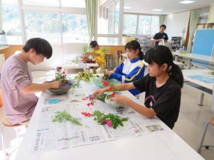 「花を生けるって簡単だと思っていたけれど、なかなか難しい。」「どの花を選んで、どう生けようかな。」と試行錯誤しながら、自己表現をしました。