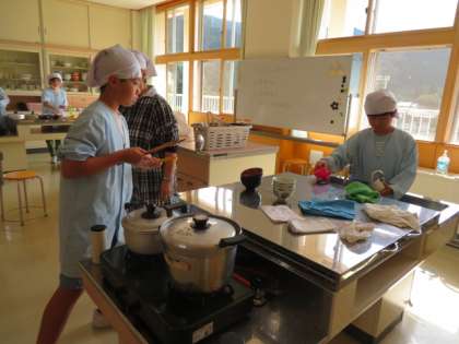 3名の方をお迎えするために、家庭科で学習することをしっかりと身に付けてきた5年生。手順よく調理を行いました。
