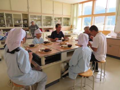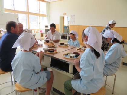 3名の方は、子供たちの考えたらっきょうのメニューに感心され、ご飯や味噌汁もおかわりしてくださるなど、子供たちはとても嬉しそうでした。