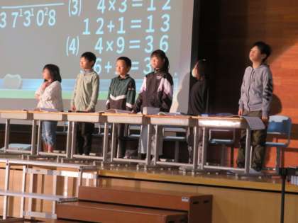 2・3年生は、算数科の学習を中心に、「教室はまちがうところだ」と題して、複式学級の学びの様子を劇に表し、発表します。