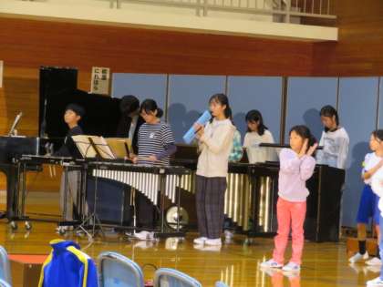 ゆったりした主旋律を鍵盤ハーモニカが奏で、合奏が始まりました。1・2年生のダンスが花を添え、見ても聴いても素敵な演奏となりました。
