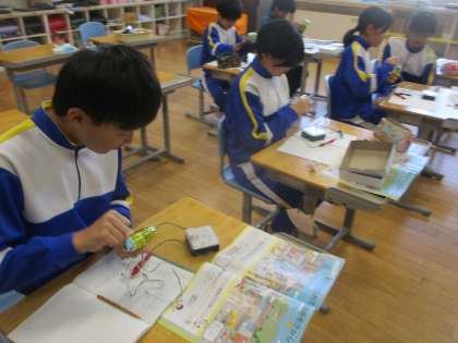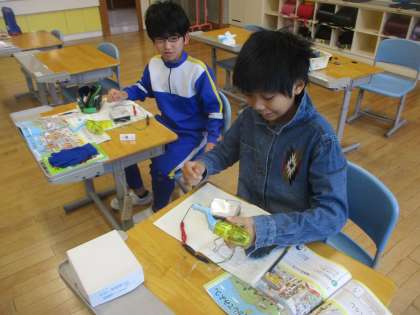 今回から電気の学習に入りました。「当たり前のように使っているものの、どうやって電気がつくられているのか分からない!」ということで、手回し発電を行いました。豆電球や検流計につなぎ、子供たちはハンドル部分の手応えの違いに驚いている様子でした。