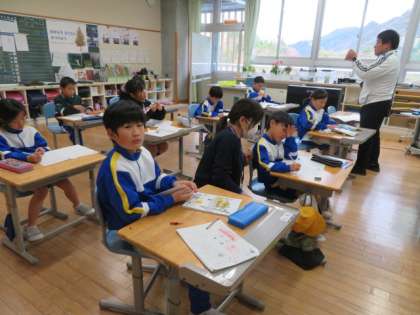 「円をしらべよう」の学習では、円を描く導入の学習を行っています。