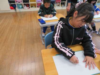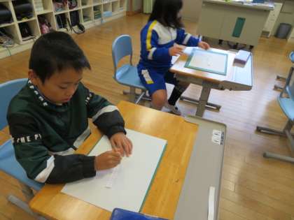 教科書に添付してある教具シートを使って集中して学習に取り組んでいました。