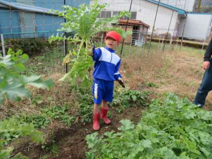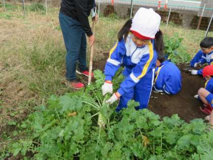「おでんにして食べたいな。」というつぶやきが聞こえました。掘るのも楽しい、食べるのも楽しい。そんな思いをもった収穫の日でした。