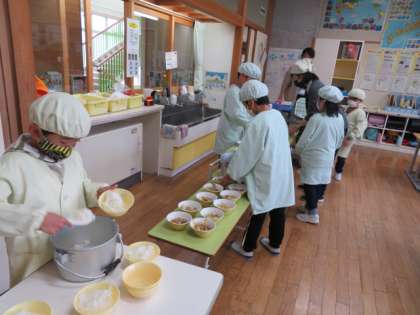その間、4年生以外の碧っ子は、会食に向けて給食の準備を手際よく行いました。