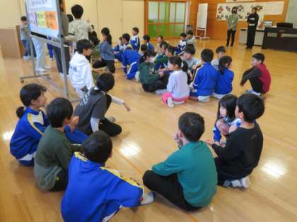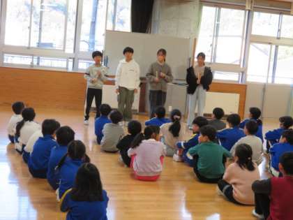 5年生は、国語の学習でよりよい学校生活について考え、みんながもっと仲良くなることができるように全校会食の企画「全校会食をしよう」と投げかけました。5日金曜日に多目的教室で全校会食を行うために、くじ引きでグループ分けを行いました。また、会場の設営についても分かりやすく説明しました。