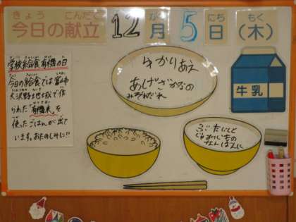 今日は、有機献立です。大沢野地域で作られた有機米を使用しています。