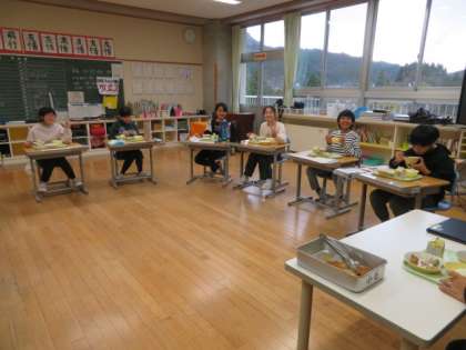 上学年の教室でも、嬉しそうに給食を食べていました。