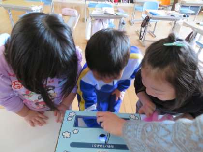「わあ、汚れがいっぱい」「石けんを付けて洗っても、汚れが落ちていないところがある」と口々につぶやきながら、自分の手をじっと見つめる子供たち。
