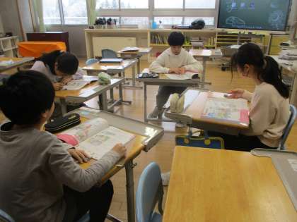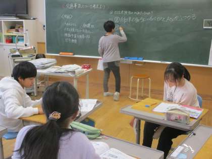 交通事故の予防について考えました。教科書のイラストから事故の原因となるものを考え、対策方法を話し合いました。