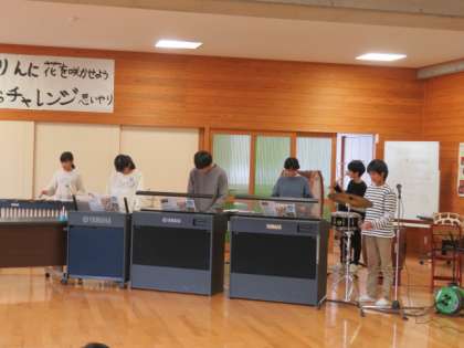 6年生は、「冒険家 植村直己物語」と題して、ストーリー性をもった演奏でした。植村直己の生涯を知り、「犬ぞり」→「冒険」→「氷の世界」→「犬ぞり」と曲調と演奏方法が変わっていきます。ベースになっている曲は、「風をきって」です。独唱あり、寒さを伝える鉄琴の音ありなど、曲の世界観を思う存分表現した演奏でした。