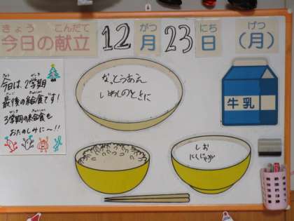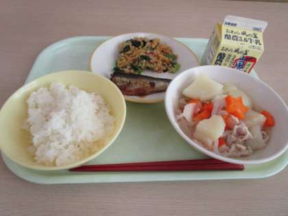 今日の献立は、ごはん、牛乳、いわしの土佐煮、納豆和え、塩肉じゃがです。