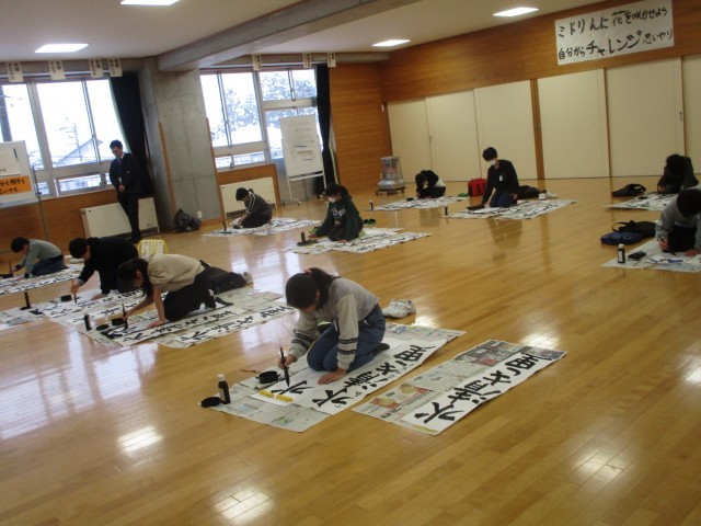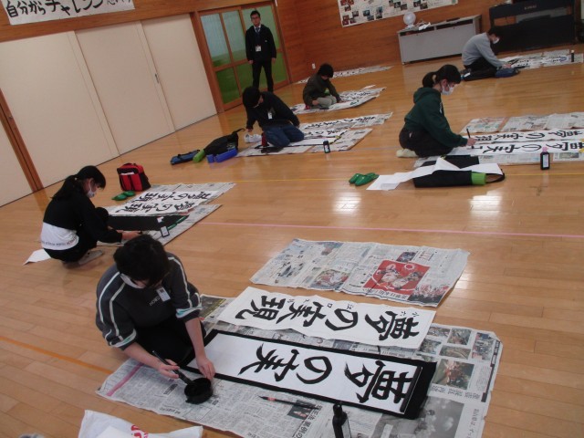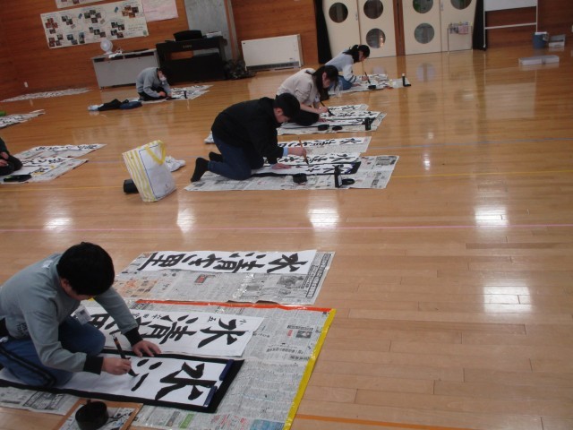 静かに準備を始めて、書初に取りかかる5・6年生の姿は、「さすが高学年」という雰囲気でした。一人一人が集中したまま、練習してきた力を発揮し作品を仕上げる様子に、成長を感じました。特に6年生は小学校生活最後の、5年生にとっては6年生と一緒に参加する最後の「書初大会」でした。思い出に残るひとときを過ごしました。
