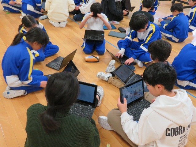 始めに教務主任が、30程度のモンスターの提示をしながら、子供たちは自分の中にいるモンスターを見つめ、タブレットに表示しました。子供たちは、イラストとモンスターのネーミングに興味津々です。自分の中のモンスターを見つめることについて、意欲的な姿が見られました。