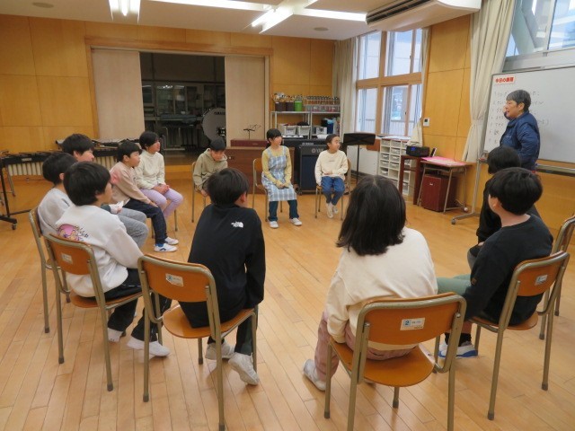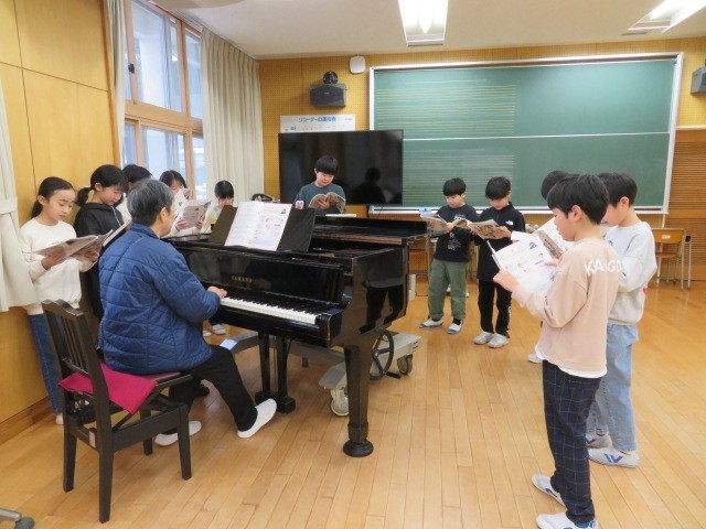 音楽科の始めは、「ゆかいにあるけば」の低音部・高音部を仲間とじゃんけんをして役割を決め、どちらの音階の歌も歌いました。