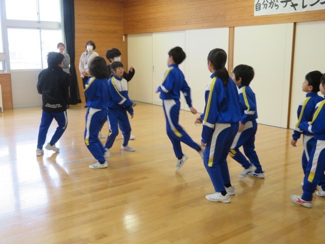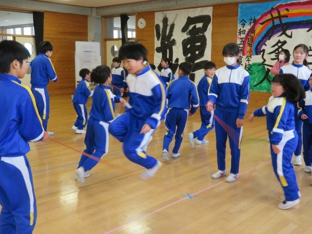 チャレンジ縄跳び団体の部の本番。今まで縦割りグループで練習してきた成果を発揮する日です。試技は2回で、よい方の回数が記録となります。皆、一生懸命にチャレンジしていました。