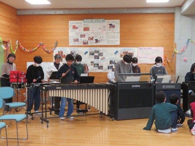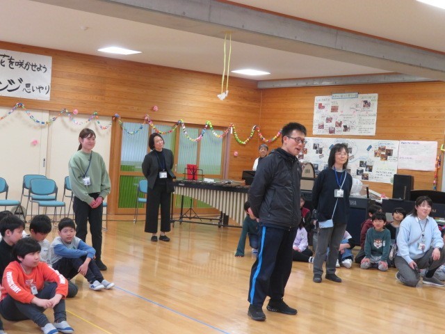 そして、シークレット企画、教職員による「虹」(6年生に担任として関わった教員の独唱と全員合唱)そして、6年生からの合奏「贈る言葉」のプレゼントがありました。