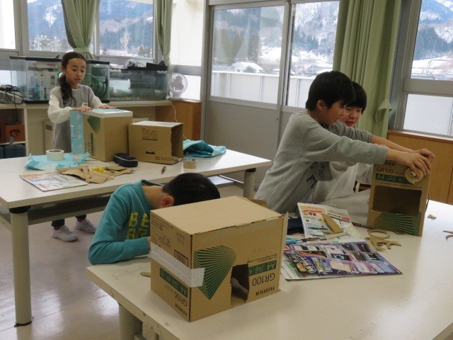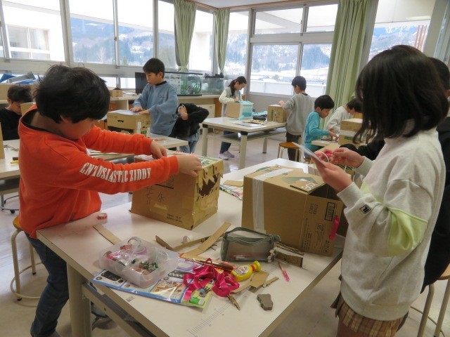 4年生は、「おもしろダンボール」の学習で、ボックスづくりを行っています。自分の思いが詰まったボックス。どのような作品になるのか楽しみです。
