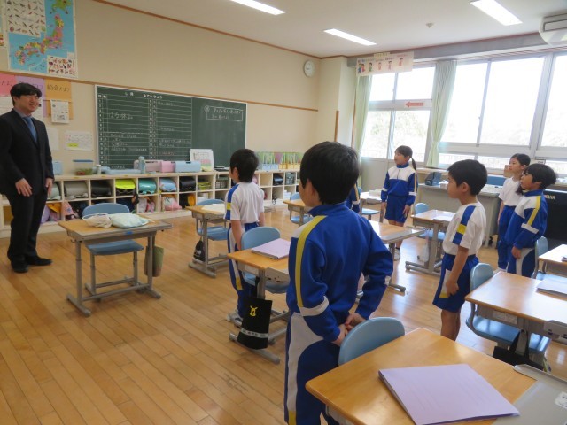 初めてなので、各学年と挨拶の時間をもちました。碧っ子はわくわく、どきどきした表情です。ALTの先生も初めての子供たちとの対面で、やや緊張気味の様子でした。これから、楽しい授業が始まります。