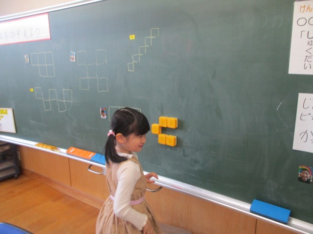 今日もブロックを使って、数を数えたり、模様をつくったりしました。