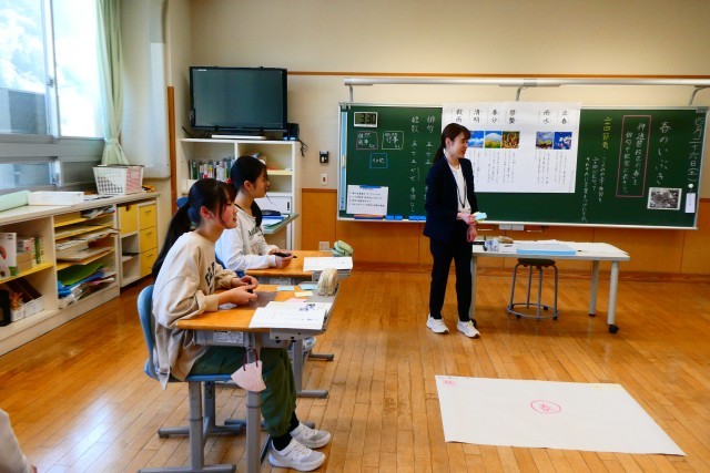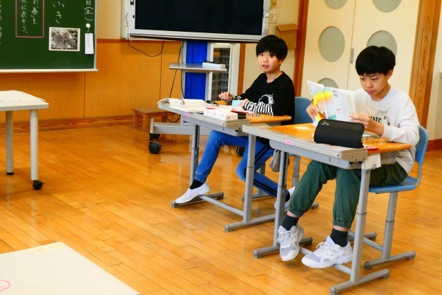 国語科「春のつぶやき」の学習では、春のイメージを広げ、神通碧校区の今の「春」を俳句や短歌に表しました。