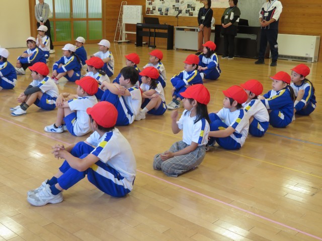 赤団の子供たちも真剣に話を聴いていました。その後、団長の指示に従って自己紹介をしたり、かけ声をかけたりしました。