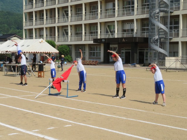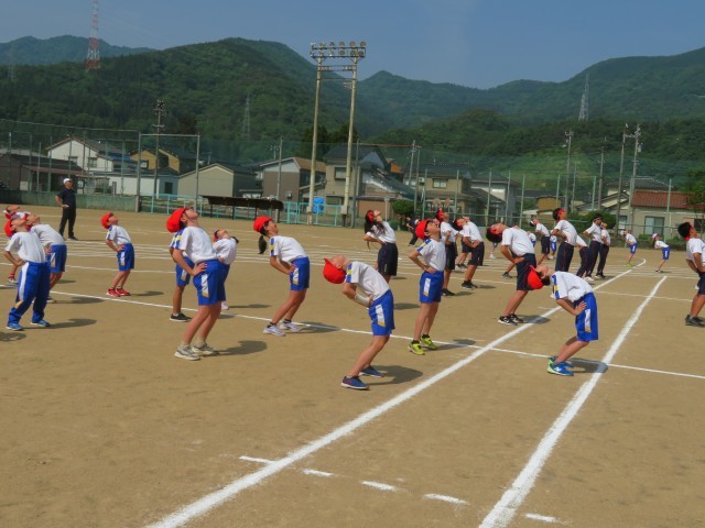 今日は天候に恵まれ、小中合同体育大会予行を行いました。