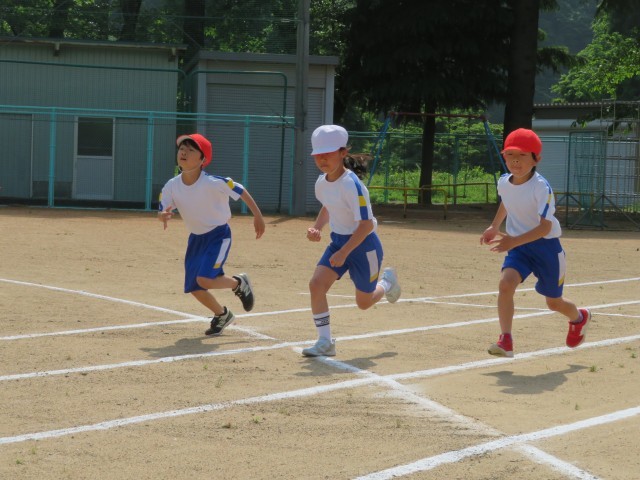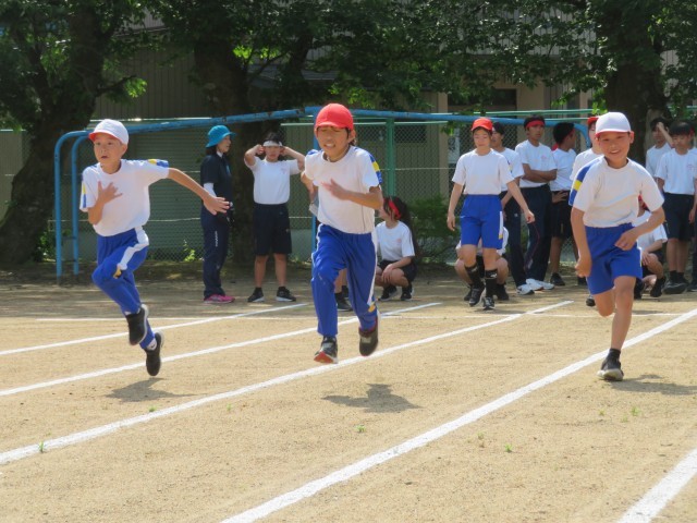 1・2年生は50m、3・4年生は、80m、5・6年生は、100mを走りました。