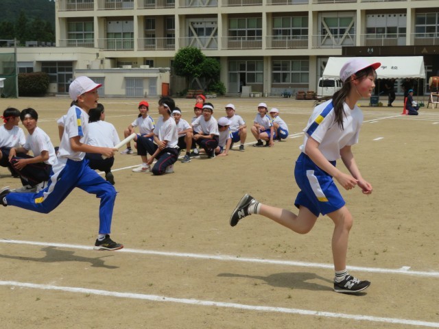 今年度の全員リレーは、小学校下学年の部、小学校上学年と中学校の部を行います。