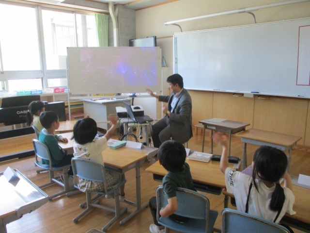 6月5日(木) 1年生 今日の学習2 公開日 2025/06/07 更新日 2025/06/07 1年生の部屋 ルイス先生との外国語の学習の様子です。英語で自己紹介をしたり、色の名前を答えたりしました。