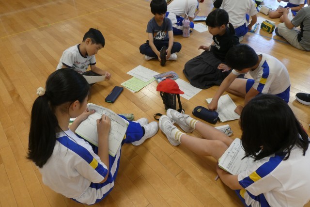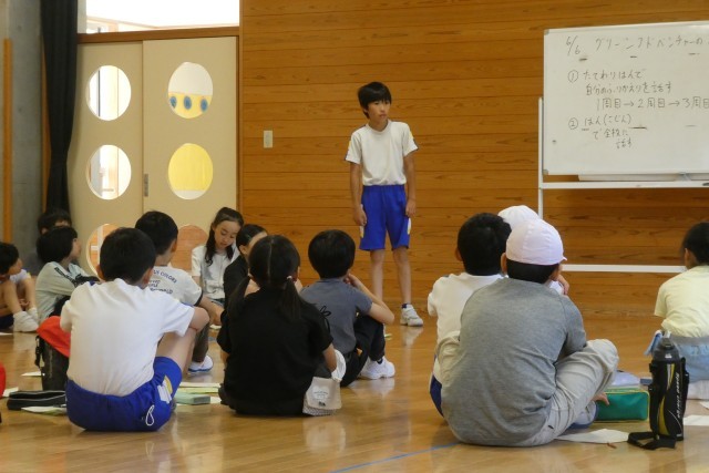 今日の朝のつどいは、グリーンアドベンチャーのふり返りです。先週立てた、自分のめあてと班のめあてのふり返りを行いました。お世話をしてくださった方に挨拶がしっかりできた、班長としてみんなをまとめることができたなど、めあてに対するふり返りをしっかり行い、次につなげていく碧っ子です。