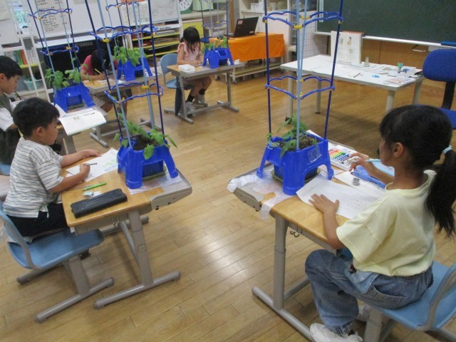 子供たちはつるやつぼみをよ~~~~~く観察していました。