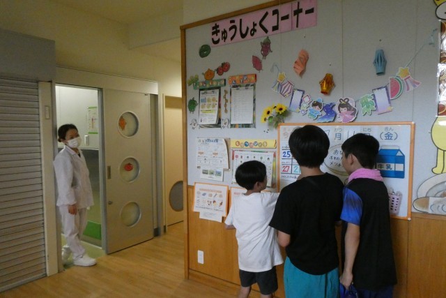 今日はセレクト給食です。昼休みの一コマ。調理員さんに、「メンチカツめっちゃ美味しかったです!」、「ホキとごはんの相性が抜群でした!ありがとうございました!」と伝える姿がありました。誰かに言われなくても、自然と感謝や感想を伝えられる碧っ子、とても素敵です。