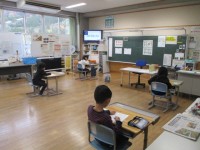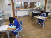今日は3年生が校外学習です。そのため、給食は1・2年生で同じ部屋で食べました。1...