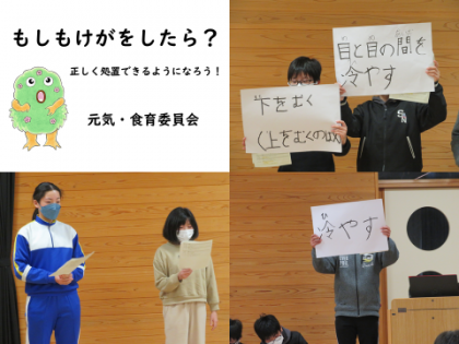 元気・食育委員会は、けがの予防のお約束と処置の方法について発表しました。 事...