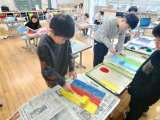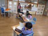 今回は版画を刷ってみました。子供たちは好きな色のインクをつけ、ドキドキしながら...