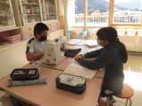 5年生は、教頭先生と国語の勉強をしています。 新聞は読みやすいものにするため...