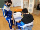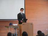 生徒指導の先生から、冬休みの過ごし方についてお話を聞きました。 人気アニメになぞ...
