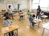 3・4年生の体育では、ラインサッカーをしています。ドリブルや仲間へのパスを使っ...