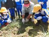 4・5年生は、昨年9月に植えたらっきょう畑の草むしりに行ってきました。 お世...