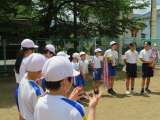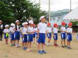1年生から3年生は、学年の発達段階に合わせ折り返しリレーでスピードと勝敗を競い...