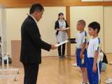 今年度は、小中合同で振り返りを行います。 総合次勝と小学校応援賞をとった、赤...