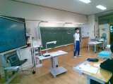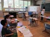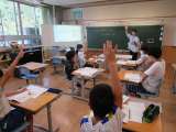 富山市のいろいろな学校から来られた先生方に見守られながら、電気の学習を張り切る...