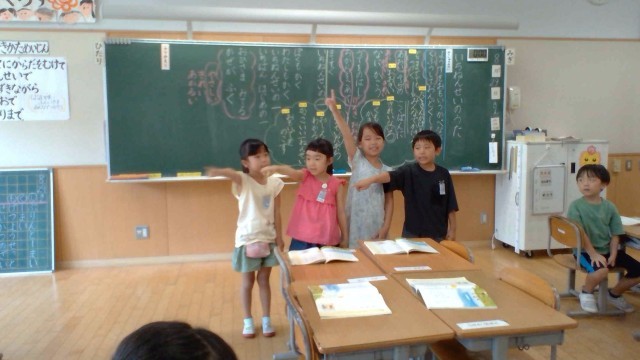 「いちねんせいのうた」という詩をグループごとに音読しました。様子が伝わるように、工夫して音読することができました。