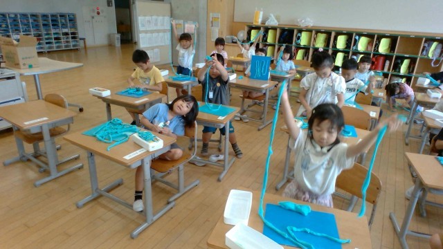 図工の時間に粘土を使って、みんなで「どれだけ長くつなげられるかな?」と挑戦しました。ちぎったり、のばしたり、工夫を重ねながら、友達と見せ合って楽しむ姿が見られました。