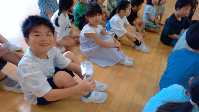 ひだまりの会さんの読み聞かせがありました。お話に出てくる干した食べ物の実物や写真を見せてもらい、子供たちは興味津々。絵本の世界と実物を重ね合わせながら、楽しくきくことができました。