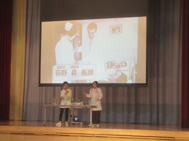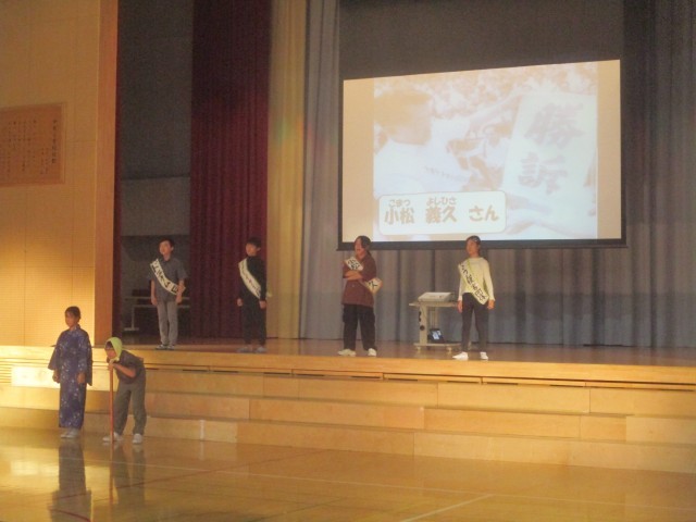 6年生は学習発表会で、総合的な学習の時間で学んだ、富山県でのイタイイタイ病の歴史について発表します。子供たちは連日、学習発表会に向けて創作劇と合唱の練習に取り組んでいます。本番を間近に控え、「ふるさと富山を命がけで守ってくれた先人たちの努力や思い、自分たちの未来に向けての決意を劇と歌に込めること」を意識しながら練習をしています。